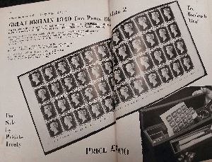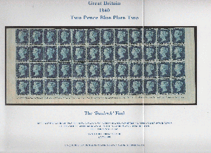 Im Auktionskatalog 21.-23.5.1951 (Sales 2205-2207) wurde die Brochure angekündigt; sie umfasste stattliche 40 Seiten (plus 4 Umschlagseiten). Auf Seite 20/21 wurde der grossartige Two Pence-Teilbogen angeboten, nun offeriert zu sogar GB£ 8'000. Als Verkäufer wurden genannt: G.P. Bailey.