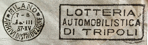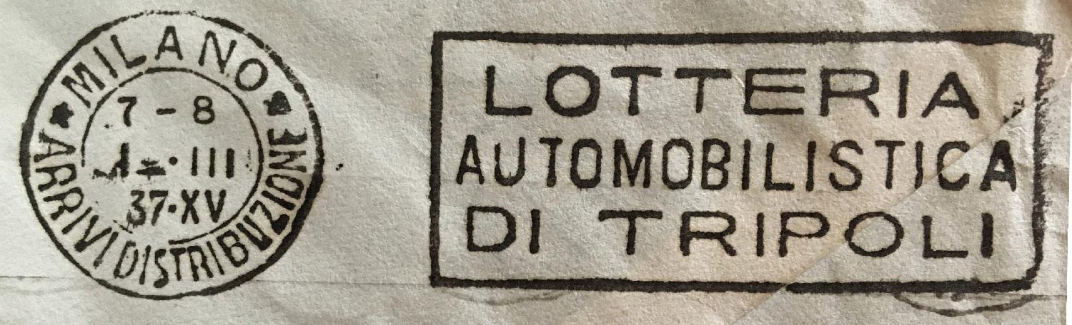 zur Beachtung kommt heute eine Werbeflagge zur "LOTTERIA AUTOMOBILISTICA DI TRIPOLI"
