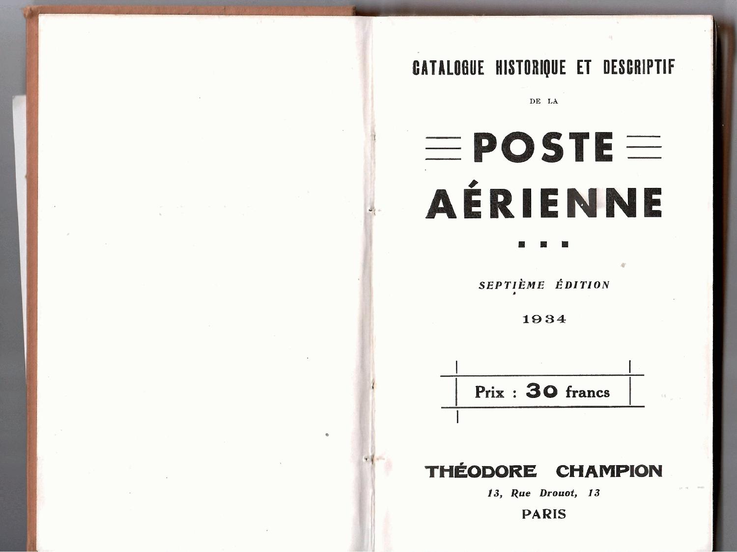 Fast golden glänzt die Umschlagseite dieses 1934 in der 7. Auflage erschienenen Spezialkataloges "Catalogue historique & descriptif de la Poste Aérienne". Allein schon die Allegorie der Umschlagseite verdeutliche, welche Bedeutung die Luftfahrt (bzw. Luftpost) in der Frühzeit Ihrer Entwicklung hatte. Ich glaube, damals kam es noch nicht darauf an, Touristen massenweise nach Griechenland oder auf Mallorca zu verfrachten, sondern die Welt eindrücklich von oben zu erforschen und notwendige Luftwege zu ergründen (Beschleunigung des Postverkehrs, der aber dennoch schon sehr schnell war im Vergleich zu heute).