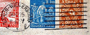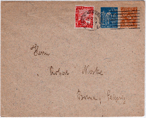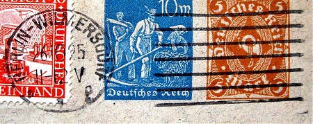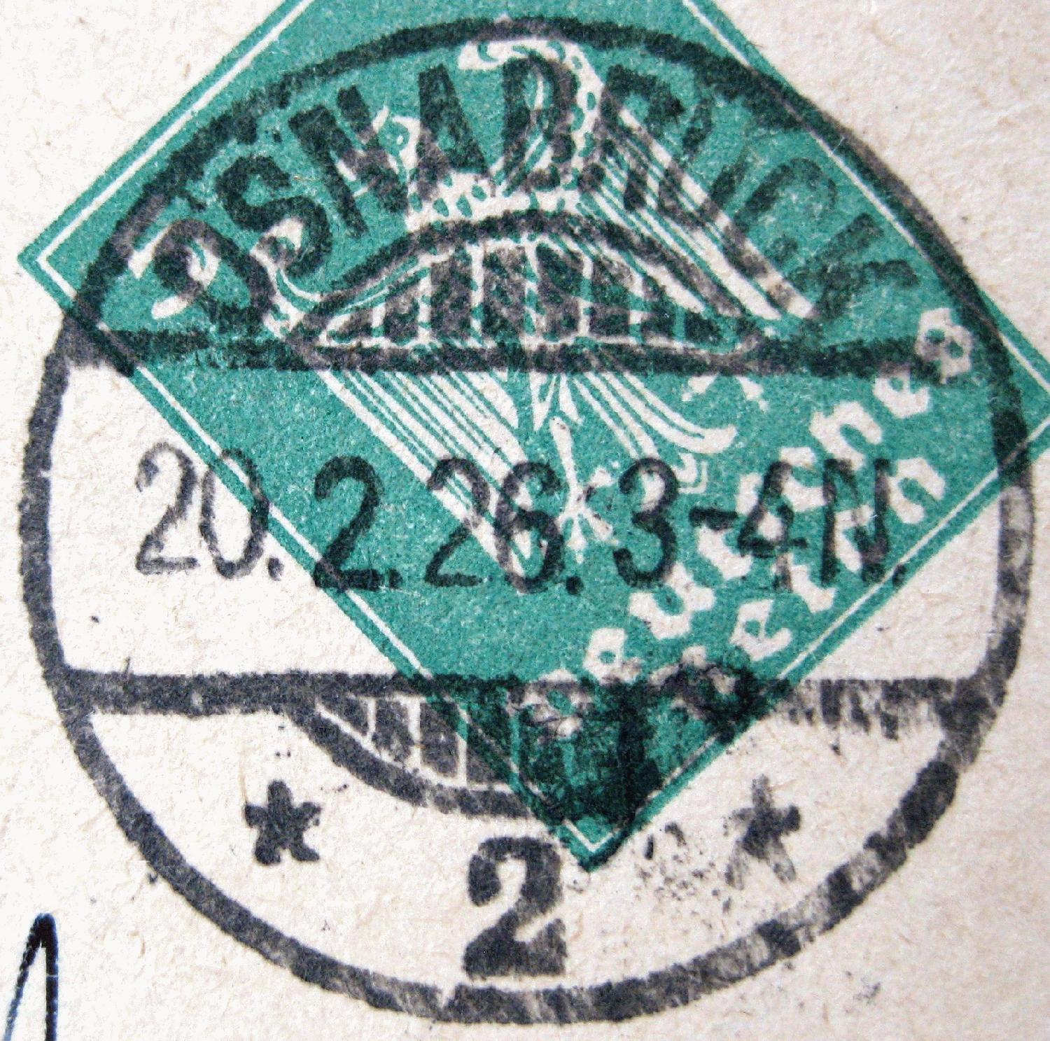 ein Brief aus Berlin-Wilmersdorf - aufgegeben vor 100 Jahren - nach Borna bei Leipzig. Empfänger war der bekannte Philatelist und Verleger Robert Noske. Als Briefumschlag diente die längst ungültige Ganzsache PU 86, frankiert wurde mit MiNr. 373 10 Pfg. "Rheinland 1000 Jahre deutsch".