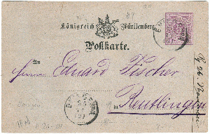 heute wieder mal etwas 150-jähriges. Ganzsache P20 aus Württemberg aufgegeben am Vormittag des 25.11.1875 in Eningen, Ankunft ca. 3 Stunden später in Reutlingen.