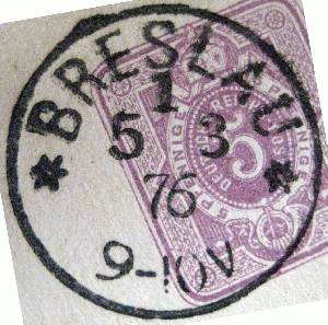 ein Kreisstempel mit zwei Sternen vor 150 Jahren auf einer Ganzsache P5 im Postamt 1 von Breslau abgeschlagen.
