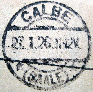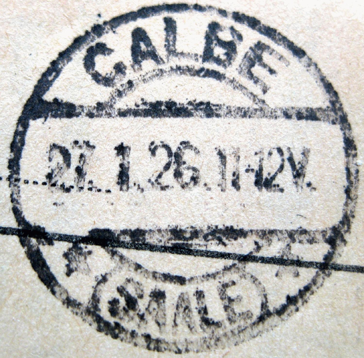 heute ein Kreisstegstempel mit Bogen oben und unten vor 100 Jahren in Calbe an der Saale als Ankunftstempel abgeschlagen.