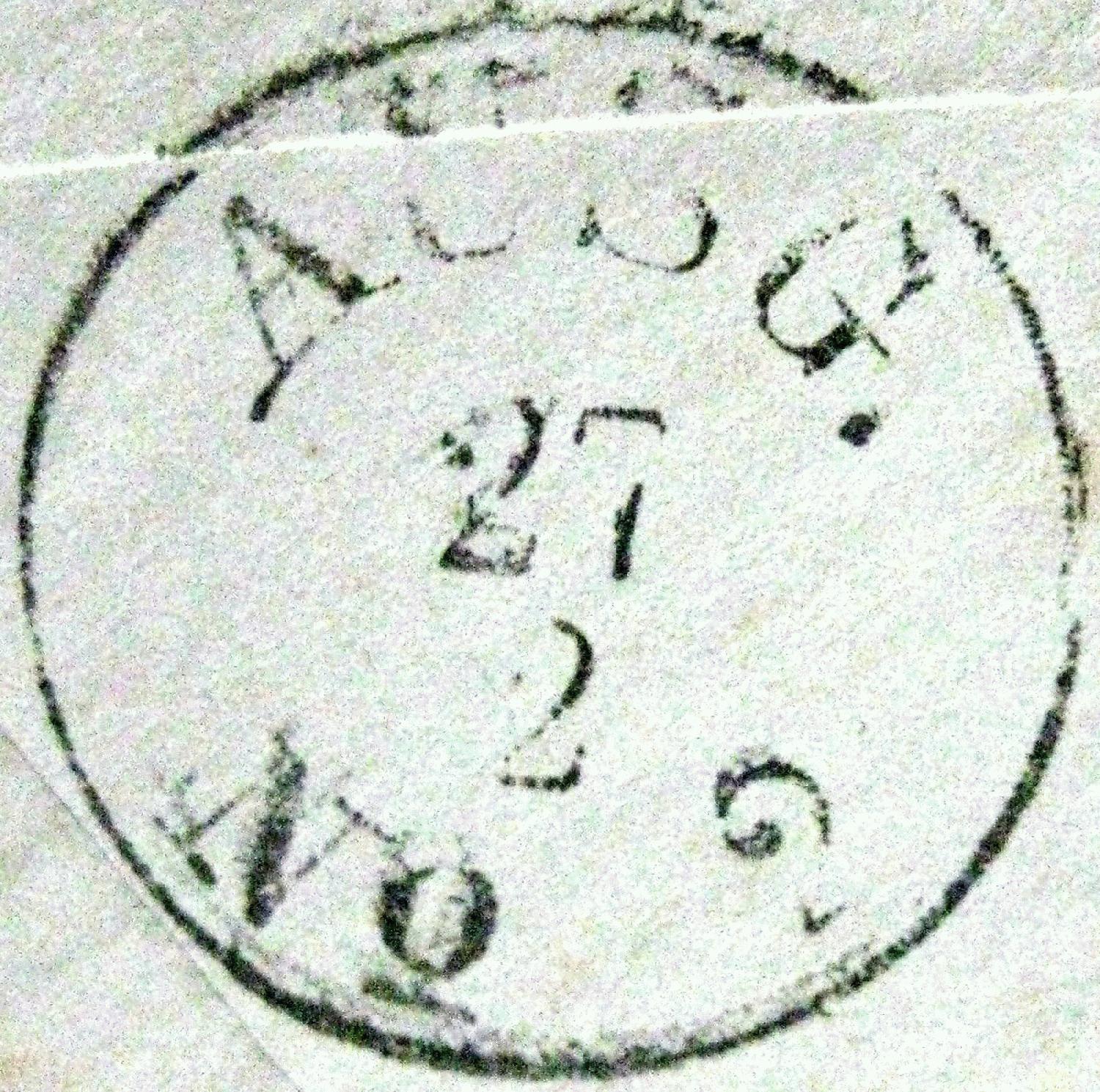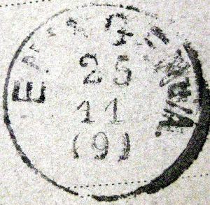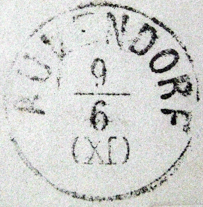 Die Zahlen sind gerade noch zu erkennen, der Ankunftstempel - 2 Tage später - ist aber deutlicher.