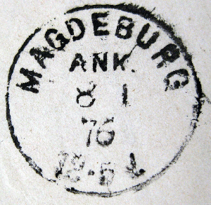 ergänzend zu meinem Beitrag vor 2 Tagen nun der Ankunftstempel aus Magdeburg vom 8.1.1876.