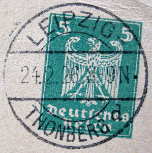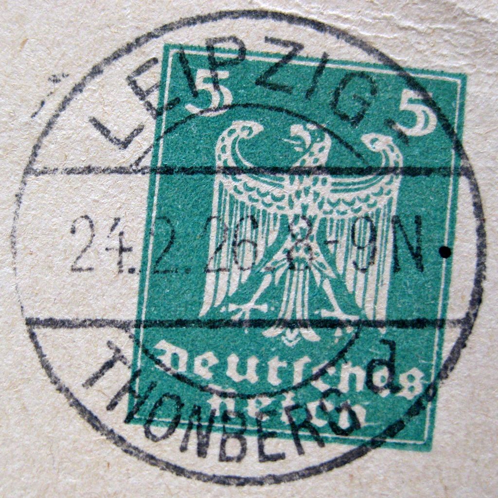 auch der nächste 100 jährige Stempel kommt wieder auf einer Ganzsachenpostkarte daher. Abgeschlagen wurde er in Leipzig-Thonberg am 24.2.1926.