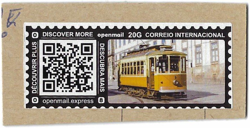 Wie es der Zufall so will, erhielt ich vergangenes Wochenende einen kleinen Haufen Kiloware bis 2023, darunter auch einige Ausschnitte Privatpostmarken von Ansichtskarten aus dem Ausland, u.a. ein Exemplar von Openmail [1] aus Portugal: