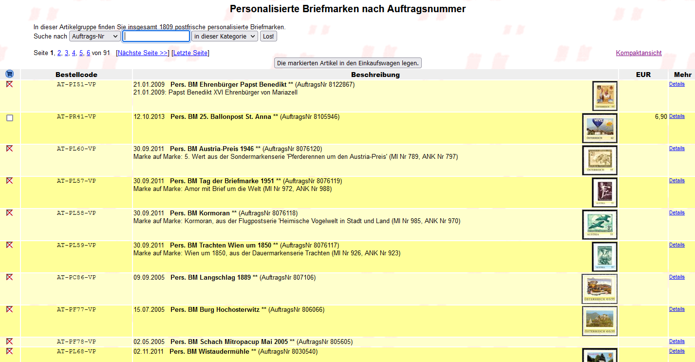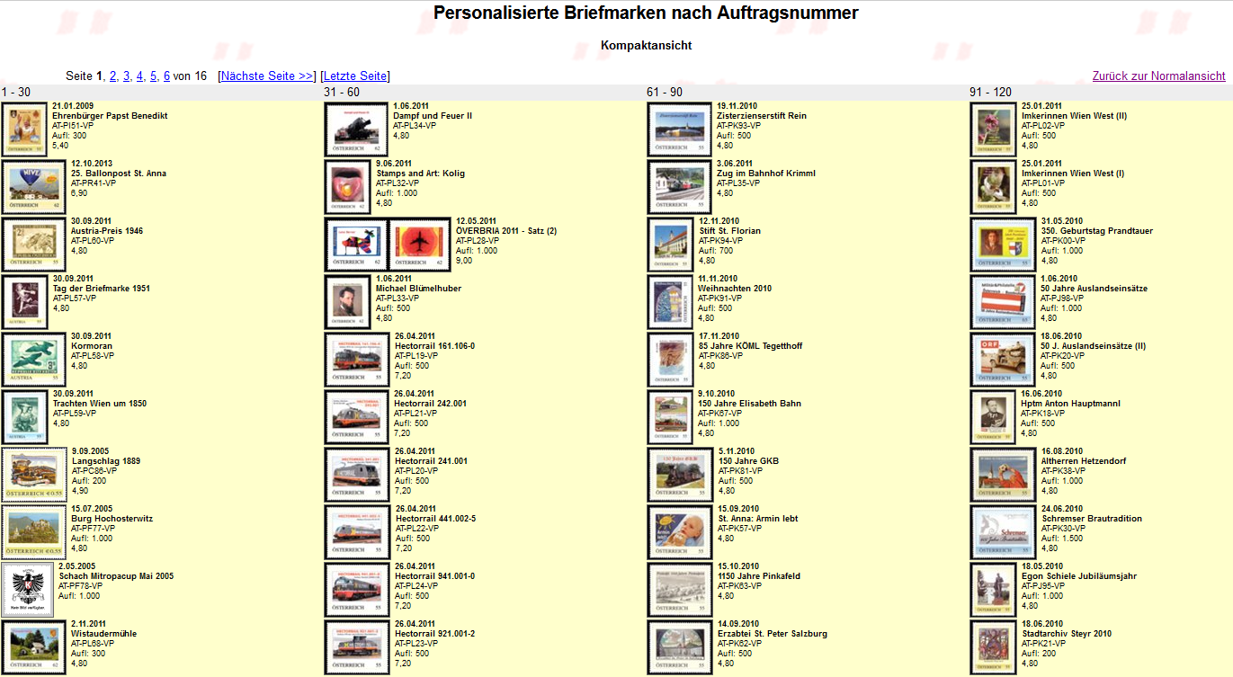 Thema: Österreich: Personalisierte Briefmarken sortiert nach Auftragsnummer
