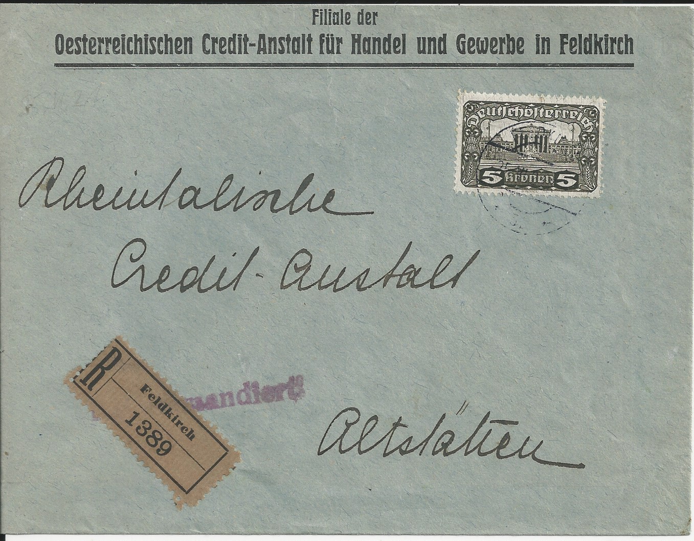 Brief vom 25.6.1921 aus Feldkirch nach Altstätten in der Schweiz.