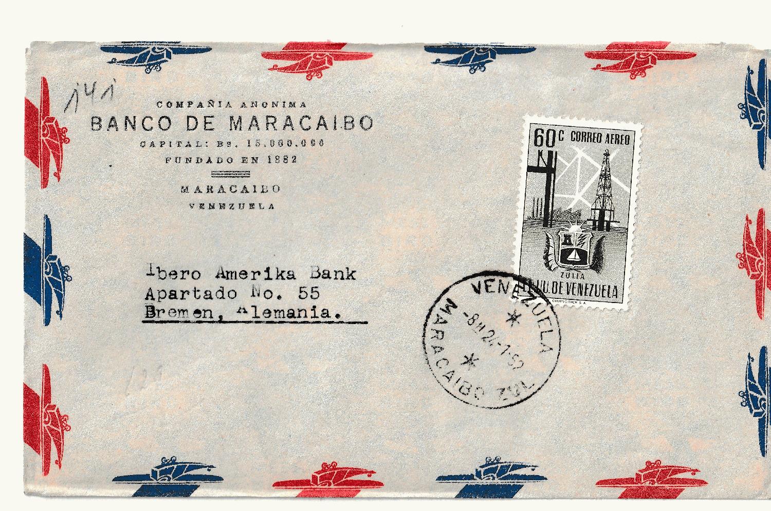 Brief der Banco de Maracaibo Venuzela nach Bremen an die Ibero Amerika Bank vom 24.01.1952