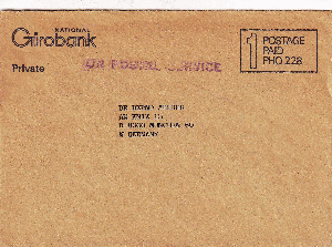Postbank Schweden, Brief erhalten 1984