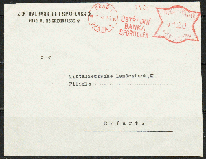 Absender ist die Zentralbank der Sparkassen in Prag II.