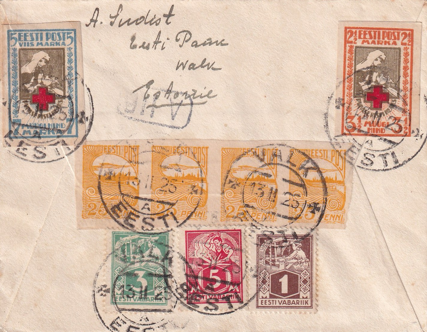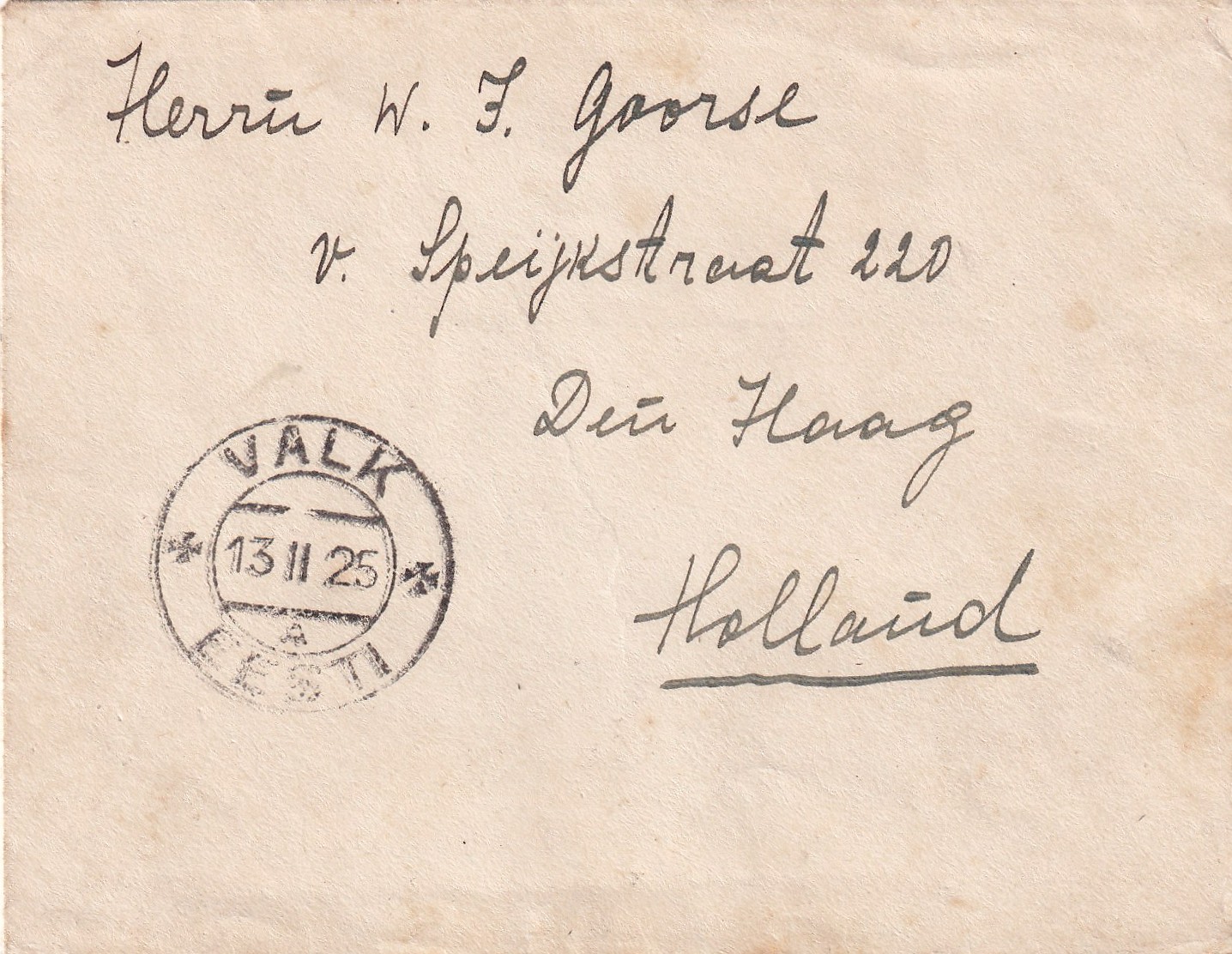 Briefe ins Ausland wurden dagegen immer frankiert, hier Walk (Valga) -> Den Haag / Holland 13.02.1925