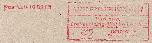 Port payé aus 60327 Frankfurt am Main mit Postfachangabe links.