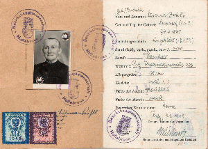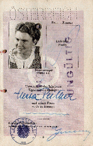 Da finde ich beim Entrümpeln des Dachbodens in einer alten Kiste schon einmal einen alten Ausweis (meiner Oma) und dann hatte die damals ausstellende Behörde wohl keine Gebührenmarken zur Hand, sondern hat Stempelgebühr in Höhe von 1 Reichsmark nur per Schreibmaschine eingetragen und gesiegelt. Die im Internet gezeigten Beispiele aus dem selben Jahr, die ich auf die Schnelle gefunden habe, tragen aber in der Regel eine Gebührenmarke zu 1 RM. Da aber bisher hier im Thread noch kein Exemplar eingestellt wurde, möchte ich dieses Exemplar hier trotzdem kurz hochladen.