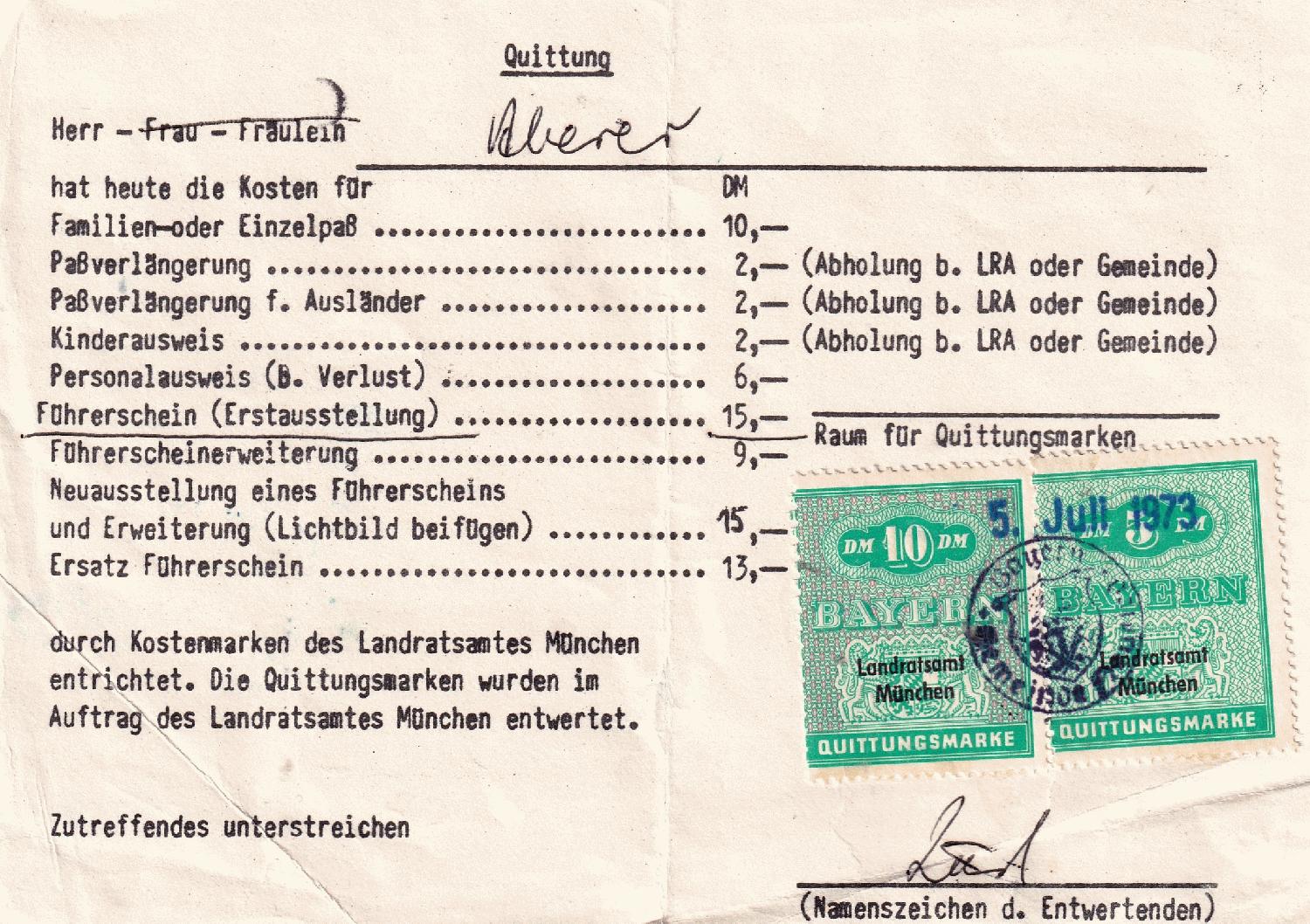 Hier nun das fiskalphilatelistische Ticket meiner damaligen Freundin bzw. Jetztfrau: