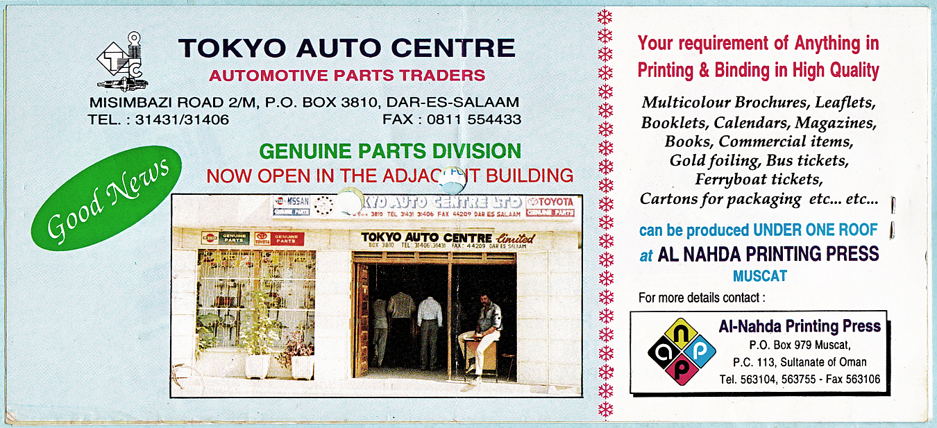In den 1990-er Jahren waren wir ja einige male für ein paar Monate mit dem Rücksack in ganz Afrika unterwegs, u.a. auch Trips nach Sansibar. Leider habe ich mich damals noch nicht mit Fiscals beschäftigt, d.h. ich habe unsere "Reise-Belege" daheim einfach in irgendwelche Jahreskisten gesteckt und auf dem Dachboden bei meinen Eltern eingelagert. Nun habe ich durch Zufall beim Entrümpeln einen ähnlichen Beleg, wie Deinen [#221], (wieder-) gefunden. Ich wusste, dass ich so etwas auch mal gesehen hatte, nur wo? Aber zum Glück wirft man als Sammler ja nichts weg. ;-)