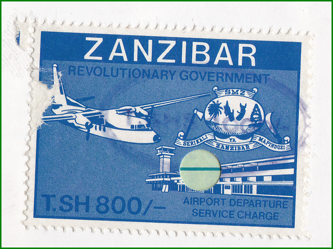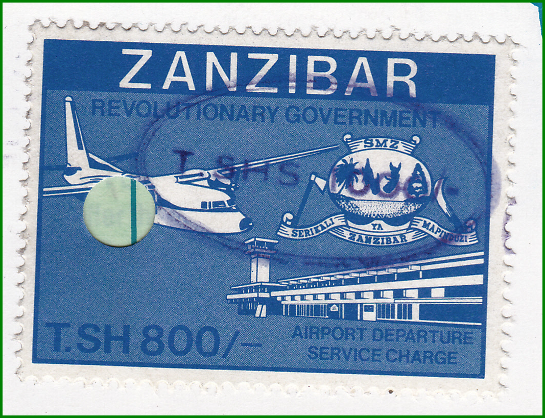 Nachdem hier Belege mit den Fiskalmarken für Schiffspassagen zwischen Sansibar und Tansania (Festlands-Landesteil) gezeigt wurden, nun das passende Gegenstück für einen Flug von Sansibar nach Daressalam auf dem Festland: