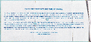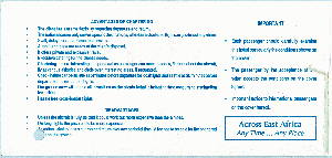 Auch in diesem Fall erfolgte die Ausweisung der Bezahlung der eigentlichen Stempelgebühr bzw. der "Steuern" für das Ticket, durch die Fußzeile "Stamp Duty Paid" mit Zusatz der entsprechenden 'Genehmigungsnummern' ("Composition Agreement No."), hier die SD/88/8428 plus die LWF/Z'BAR/0228 des Finanzministeriums (WF: Wizara ya Fedha) von Sansibar (Z'BAR: Zanzibar).