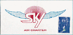 Ticket von "Sky Air Charter" (Sky Tours Ltd.) - ausgestellt von "Fisher Man Tours" in Darajani (Stone Town) in Sansibar Stadt (Zanzibar Town) - für einen Flug von Sansibar nach Daressalam am 07.01.1995 zum Preis zu 40 US$ [Vorderseite, Rückseite, Innenseite-links, Innenseite-rechts und Kundendurchschlag des eingehefteten Tickets].