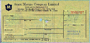 Die Bezahlung der eigentlichen Stempelgebühr bzw. der "Steuern" für das Ticket selbst, wird durch die Fußzeile "Stamp Duty Paid" mit Zusatz der entsprechenden 'Genehmigungsnummern' ("Composition Agreement No.") dokumentiert, hier die SD/38/8301 und die WF/ZBR/0212 des Finanzministeriums von Sansibar (WF: Wizara ya Fedha, ZBR: Zanzibar).