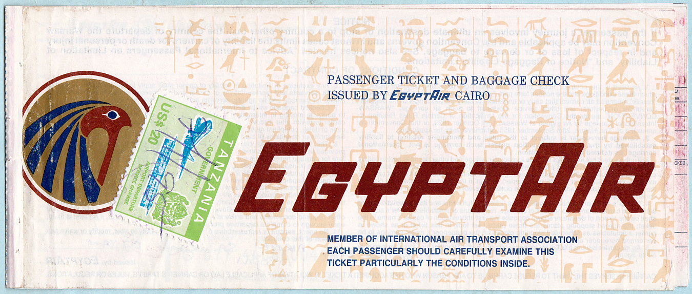 Flugticket von Egypt Air (Deckblatt). Da die weiteren Seiten keinerlei direkteren Bezug zur tansanischer Steuermarke haben, stelle ich diese in diesem Fall auch nicht mit ein.