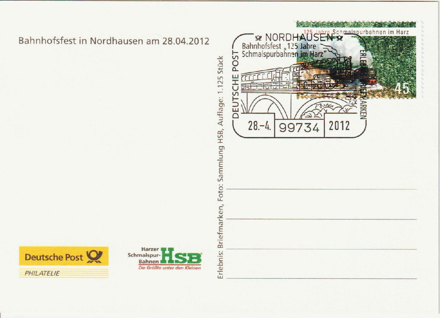 aus einer Sammlungsauflösung erhielt ich diese Postkarte mit Sonderabstempelung. Interesant ist, das die Karte von „Deutsche Post – Erlebnis Briefmarken“ herausgegeben wurde. Die Mitarbeiter waren persönlich vor Ort.