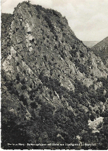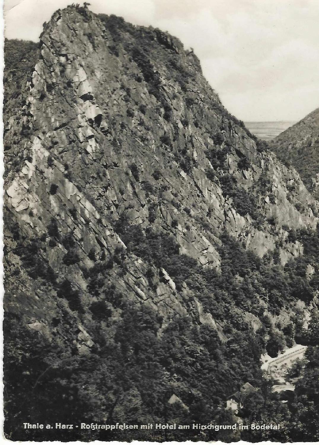 ergänzend zu den Beiträgen: [#33], [#51], [#115], [#652], der Roßtrappenfelsen, auf einer gelaufenen Postkarte von 1960, Druck von der Albert Krebs KG Leipzig