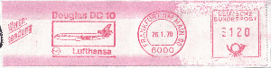 ein Absenderfreistempel von der Lufthansa in Frankfurt vom 26.01.1978: