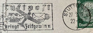 manchmal sind es nur Schatten, die ein Flugzeug wirft - so auch die zeitgewinnende Luftpost aus Stuttgart aus dem Jahr 1937.
