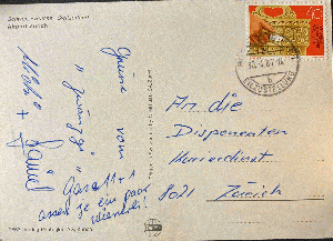 Im übrigen habe ich auch vorher versucht vom Auto unten rechts etwas örtliches zu erhaschen, aber mit meiner Lupe und Phantasie entziffere ich: "AIR CONDITIONER PASSANGER COMFORT", was für mich nicht auf eine Örtlichkeit schließen läßt. Auf der Kartenrückseite sind im übrigen Weihnachtsgrüße mit keinerlei Bezug zum Kartenbild.