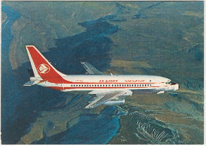 Boeing 737-200 gab es hier schon einige zu sehen. Hier ein Exemplar der Air Algérie auf einer unbenutzten Ansichtskarte von 1973.