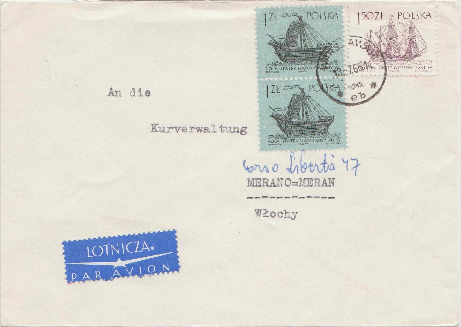 Ein Brief der Österreichischen Botschaft in Warschau an die Kurverwaltung in Meran am 13.7.1965: