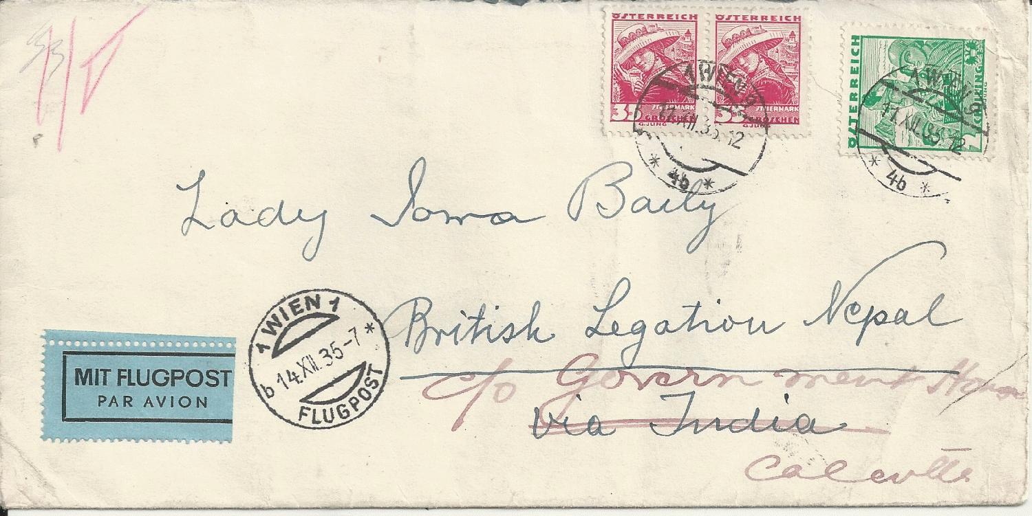Brief vom 11.12.1935 aus Wien nach Nepal an die Britische Botschaft.