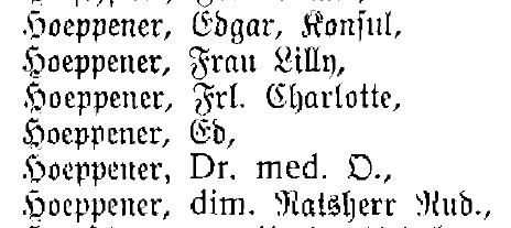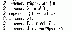 Auch das passt ausgezeichnet. Ich vermute jetzt, dass die Karte an die Frau von Edgar Hoeppener und nicht an einen Nachfahrin. Und jetzt habe ich auch noch den Beweis dazu. Im Zufallsfunde - Ahnenforschung.Net Forum [2] steht: