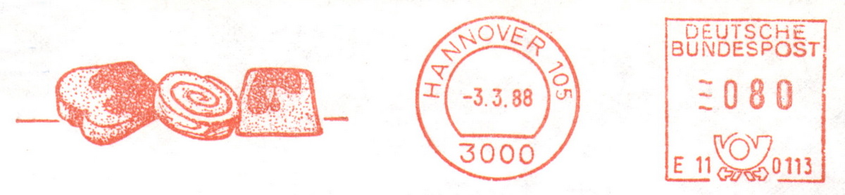 ein Stempel der Firma Bahlsen mit drei Kuchenstückchen.