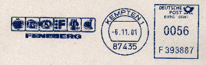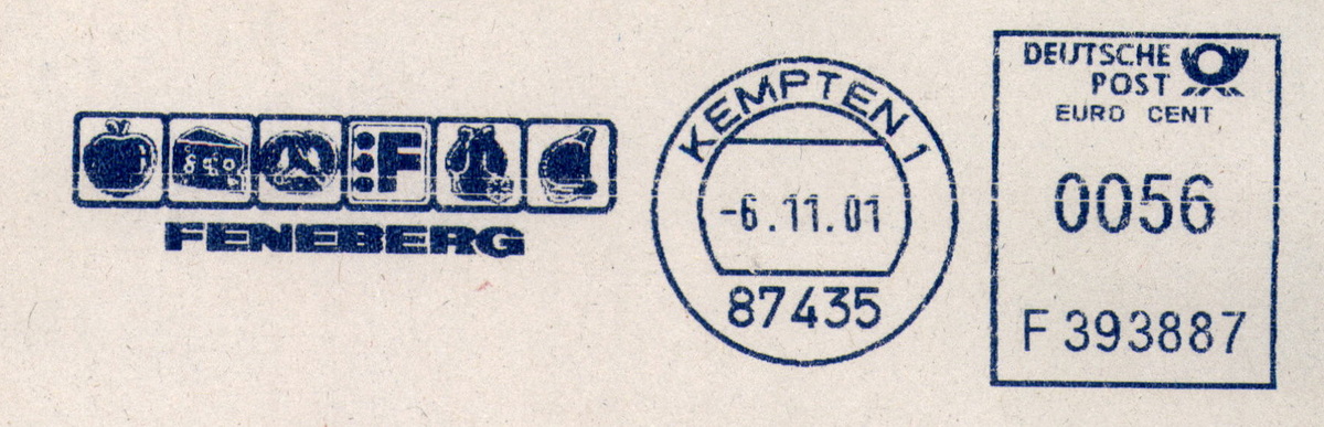 im Absenderfreistempel der Firma Feneberg aus Kempten sind einige Lebensmittel zu sehen: