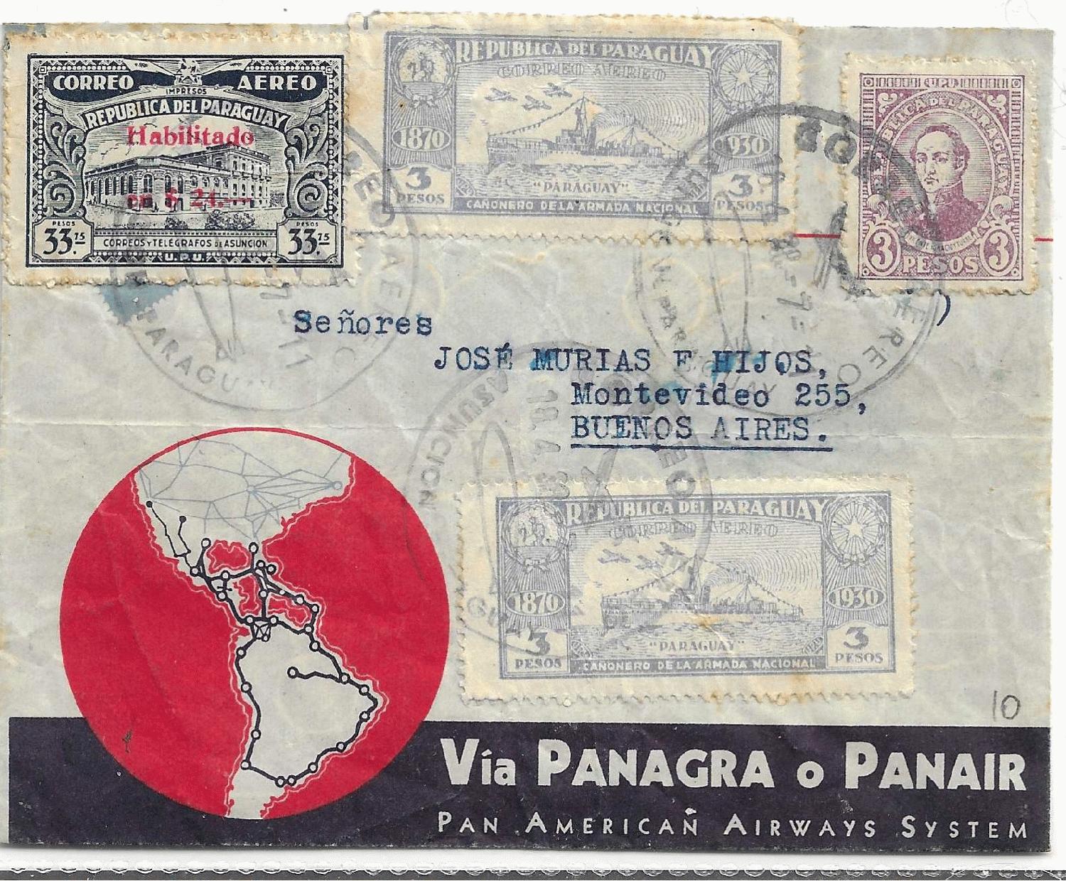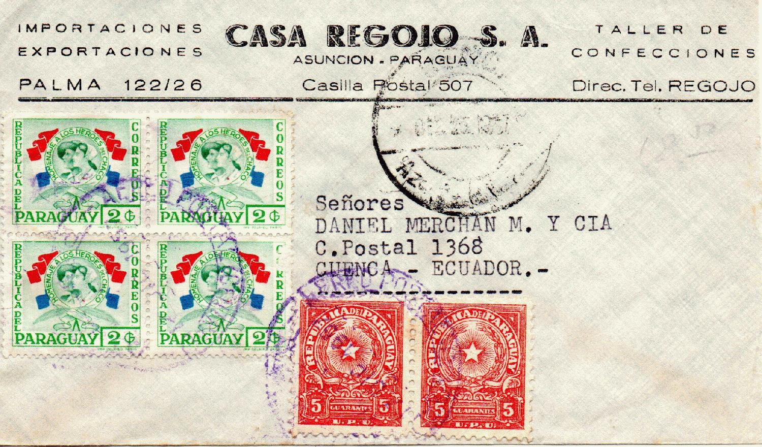 Ich kann heute einen Beleg zeigen, der Deinem zum Einen ähnelt, zum Anderen einige Fragen aufwirft. Letzteres zumindest für mich, denn ich kenne mich in dem Postwesen Paraguays überhaupt nicht aus.