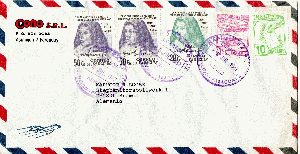 Dieter, Du schreibst R-Flugpostaufkleber, also für ein Einschreiben? Woran machst Du das fest? Dem Aufkleber fehlen typische Kennzeichen eines R-Labels. Andererseits zeigt mein Beleg noch den Stempel CERTIFICADO und rückseitig ein Zustellungsvermerk, wenn ich das richtig interpretiere. Auch die Gesamtportohöhe scheint mir für einen normalen Brief per Luftpost zu hoch zu sein, wenn ich sie zum Beispiel mit dem Beleg in Beitrag [#3] vergleiche.