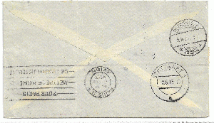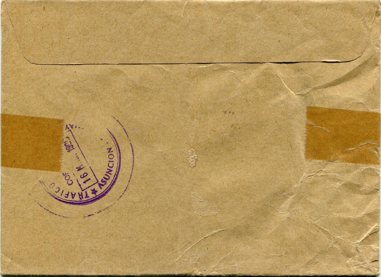 Auf der Rückseite befindet sich offensichtlich auch noch ein Durchgangsstempel aus Asuncion.