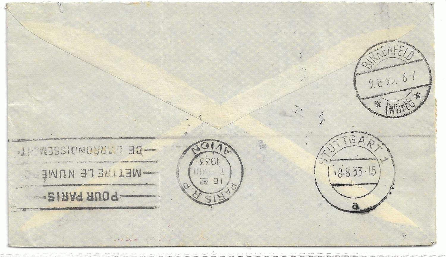 Beiden Belegen gemeinsam ist außerdem der Flugpostaufkleber.