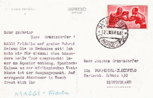 Ein Brief aus Rio Benito, damals Spanisch Guinea an das Bistum in Douala, Kamerun, gelaufen 1959: