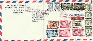 noch ein weiterer markenreicher Luftpostbrief aus Kabul nach München. Dieser Beleg stammt vom 18.3.1953. Ob die Vielzahl der Marken dem tatsächlichen Porto oder mehr dem Sammlerinteresse der Adressatin geschuldet war ist mir nicht klar.