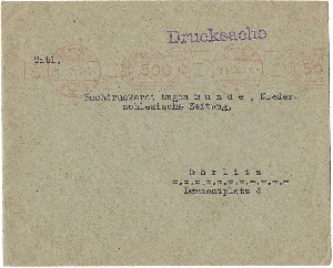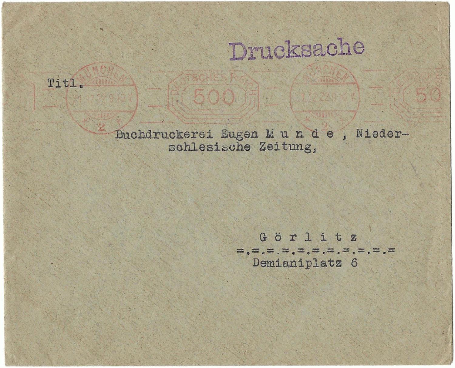 Zeitungsschleife aus München nach Görlitz, Bandstempelmaschine München *2* vom 31.12.1922 (PP11), Portostufe zu 500 Pf., Stempelfarbe rot