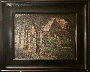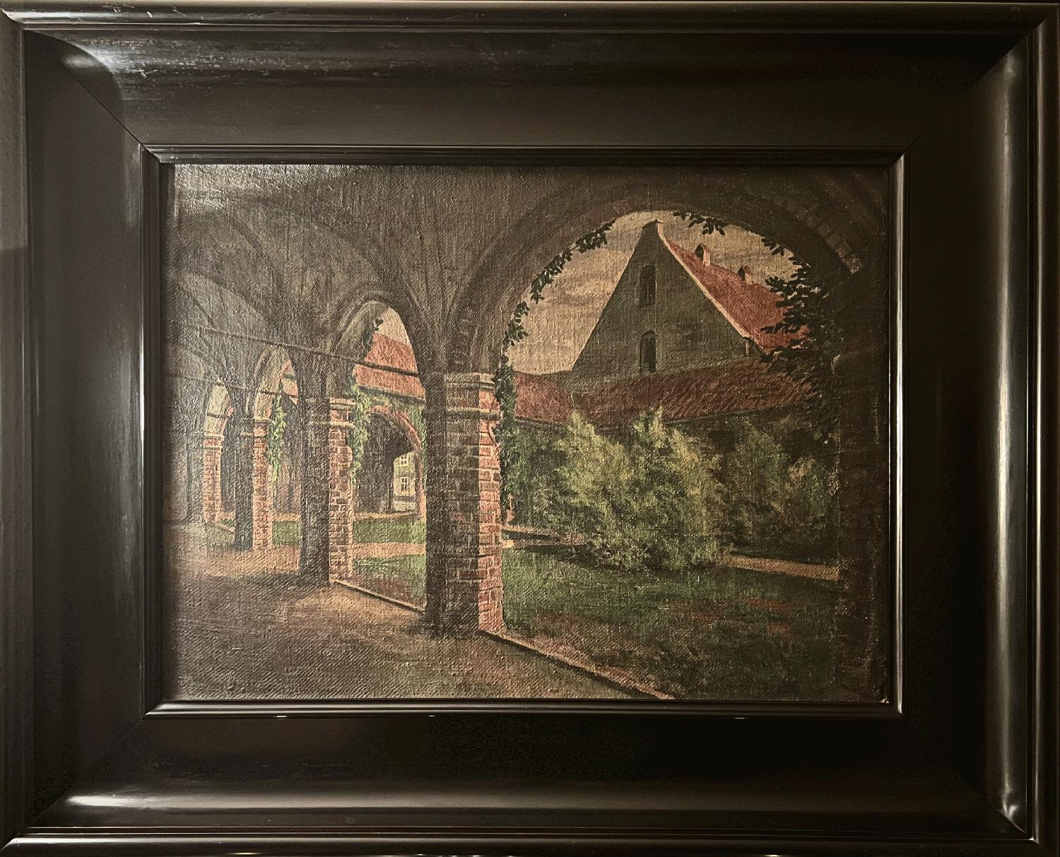 ein entfernter Verwandter von mir hat 1922 dieses Gemälde vom Kreuzgang und Klosterhof des Johanniskloster in Stralsund gemalt.