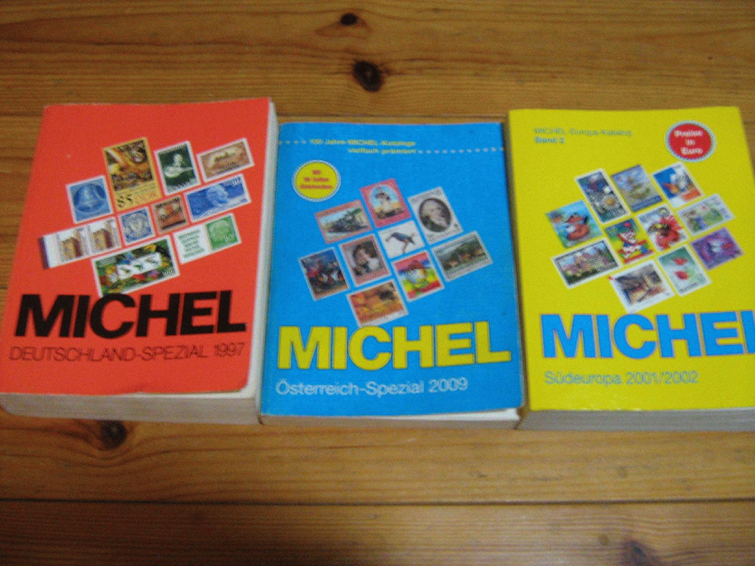 Michel Deutschland Spezial 1997, gute, gebrauchte Erhaltung, ohne Abstreichungen, Michel Südeuropa 2001/2002, gute, gebrauchte Erhaltung, ohne Abstreichungen, Michel Österreich Spezial 2009, gute, gebrauchte Erhaltung, einige Abstreichungen.